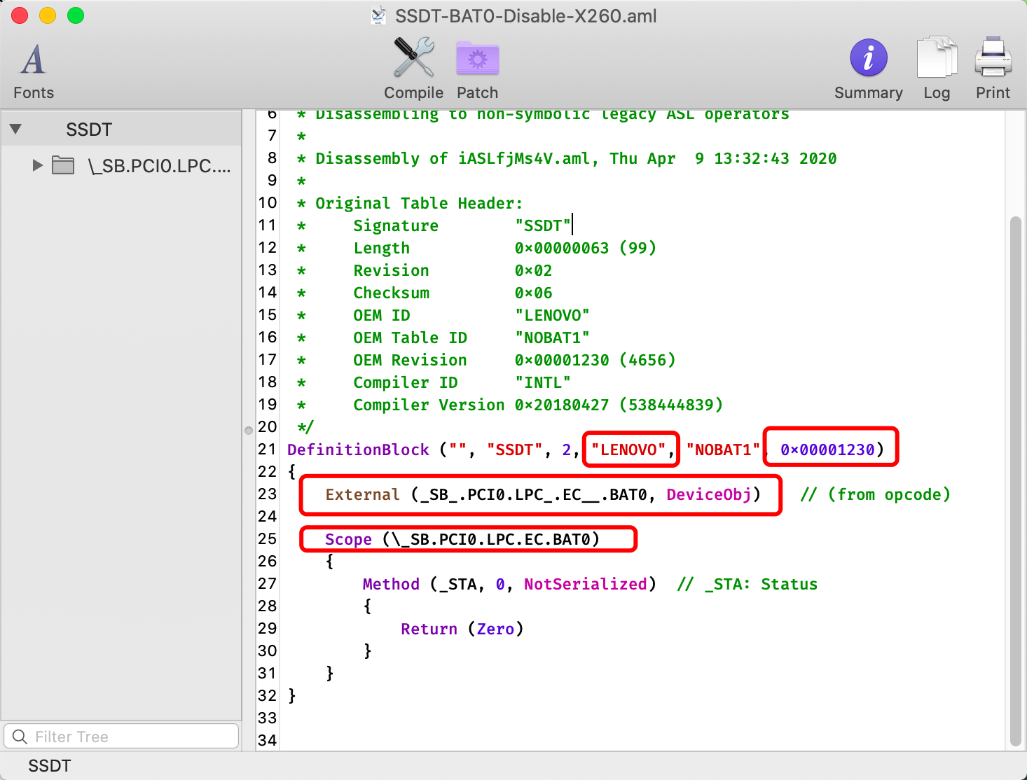 首先,我们需要下载我提供的电池热补丁的样本(SSDT-BATT.dsl)。同时,我还准备了联想X260的电池热补丁作为例子。