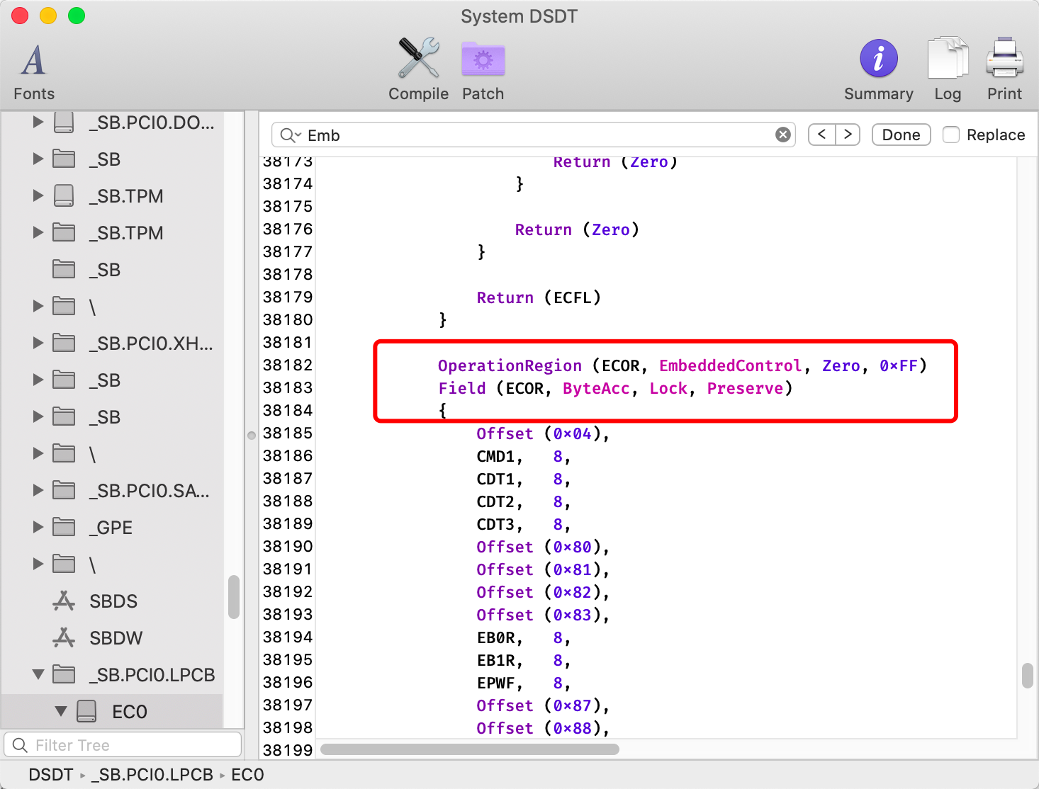 然后,准备你的DSDT或者SSDT(存储有EC缓冲区的,Embedded Controller Buffer)